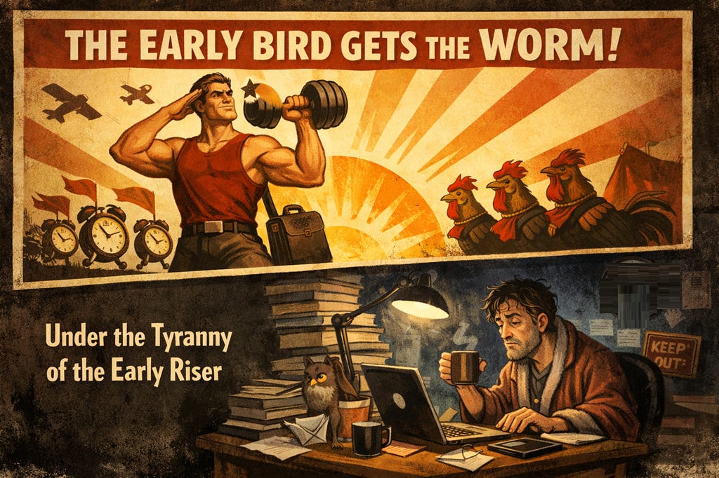 For World Sleep Day, we reprised this essay humorously arguing that society unfairly privileges early risers while stigmatizing night owls. Through cultural, historical, and personal examples, AQL explored the pervasive “tyranny” that equates early waking with virtue and productivity, despite many night owls working longer or more creatively at later hours. As this bias is rooted in tradition and outdated economic patterns rather than reality, we called for greater recognition of differing biological rhythms, framing chronotype as an innate trait deserving fairness and accommodation. We advocate flexible schedules and a more inclusive view of productivity valuing output over morning-conformity.